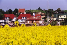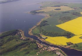 Von dort geht die Autofähre ca. 20 Minuten über den Strelasund nach Glewitz.